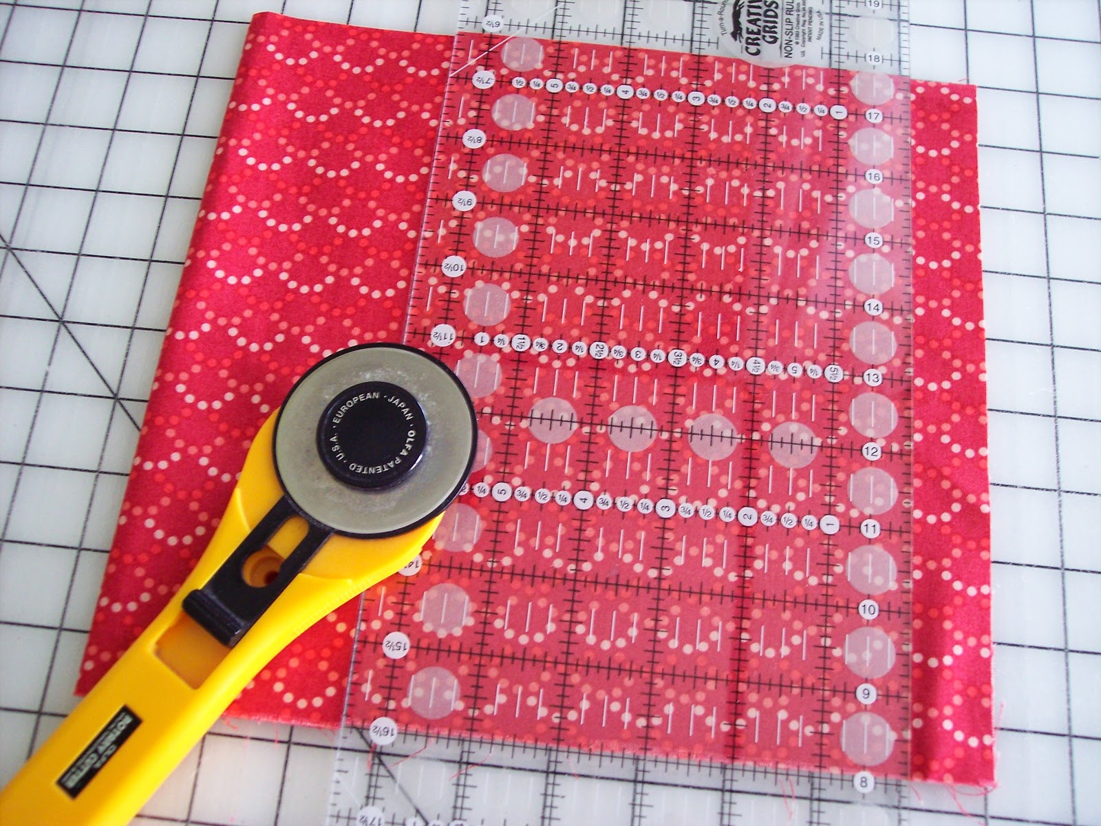 Fabric note--I like to use three different prints, but the selection is up to you. This can truly be a scrap buster. If you are starting from scratch, you can make this with two fat quarters.